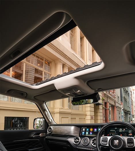 This expansive sunroof offers a view of the sky above, adding a sense of serenity and space to every journey. With just a touch, it opens up to bring in fresh air, natural light, adding a sensory layer to not just see the journey but to feel it.